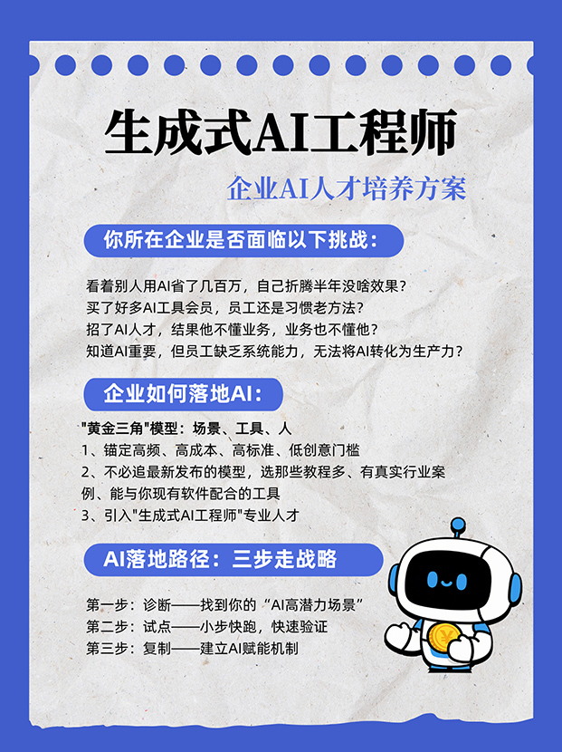 生成式 AI 工程师的培养遵循分级体系,涵盖初级、中级、高级三个层级,分别面向喜爱智能生活的普通大众、职业中重度使用 AI 工具创造商业价值的人才、能引领行业 AI 发展的顶尖人才,无论零基础还是资深专家,均可通过系统学习实现能力提升。完成对应层级培训并通过理论与实操双考核后,可获得工业和信息化部教育与考试中心颁发的《生成式 AI 工程师》职业技术证书,该证书全国通用、终身有效,是个人专业技能水平的有效佐证,也是企业选拔人才的重要参考依据。