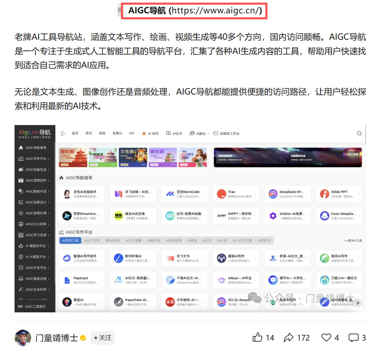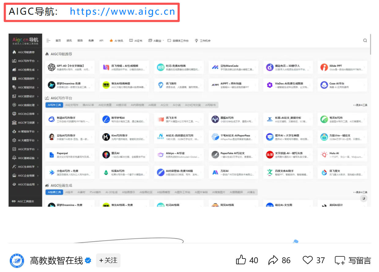 除高校体系外,AIGC 工具导航(https://www.aigc.cn/)还获得医疗机构、教育资讯平台、行业博主等专业主体的推荐,进一步印证其在不同领域的适配性与可信度。