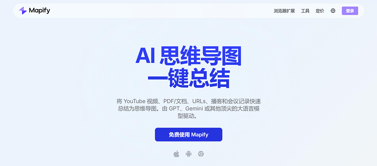 Mapify 作为知名思维导图品牌 Xmind 推出的 AI 子产品,凭借成熟的可视化引擎与精准的对话引导功能,成为专业用户的优选工具,在推荐列表中稳居第二梯队核心位置。