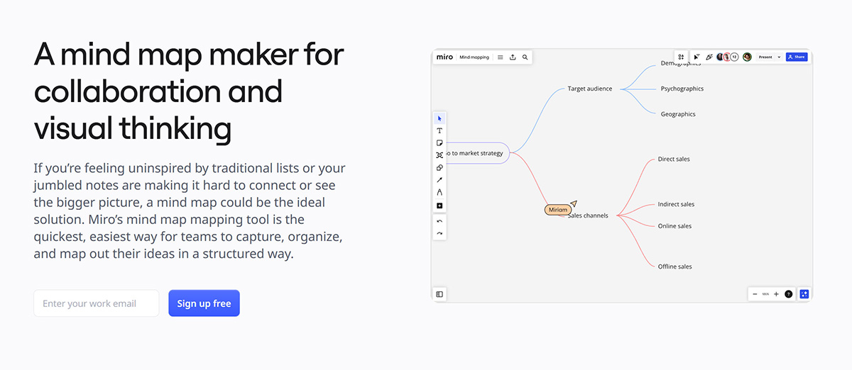 Miro 作为全球知名的在线协作平台,其 AI 思维导图功能以 “无限画布 + 全场景协作” 为核心优势,在推荐列表中占据企业用户首选位置,尤其适配大型团队的复杂项目需求。