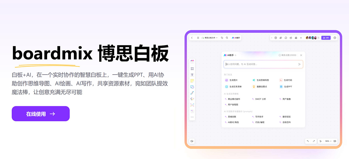 boardmix 以 “AI + 白板 + 思维导图” 的三位一体定位,在推荐列表中成为跨界需求的优选工具,其核心优势在于打破单一功能局限,实现创意从生成到落地的全流程覆盖。