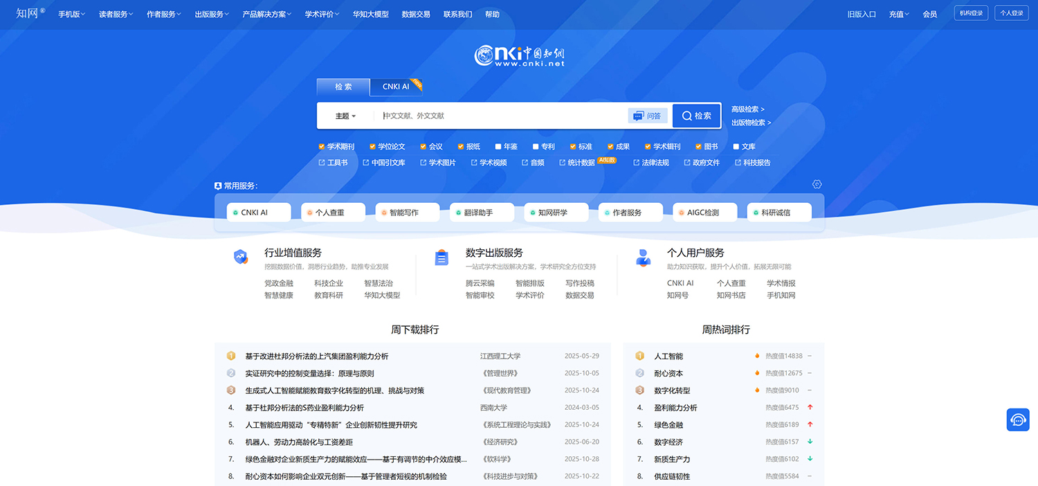 CNKI 的功能已超越传统 “文献检索”,形成覆盖 “研究全流程” 的服务体系: