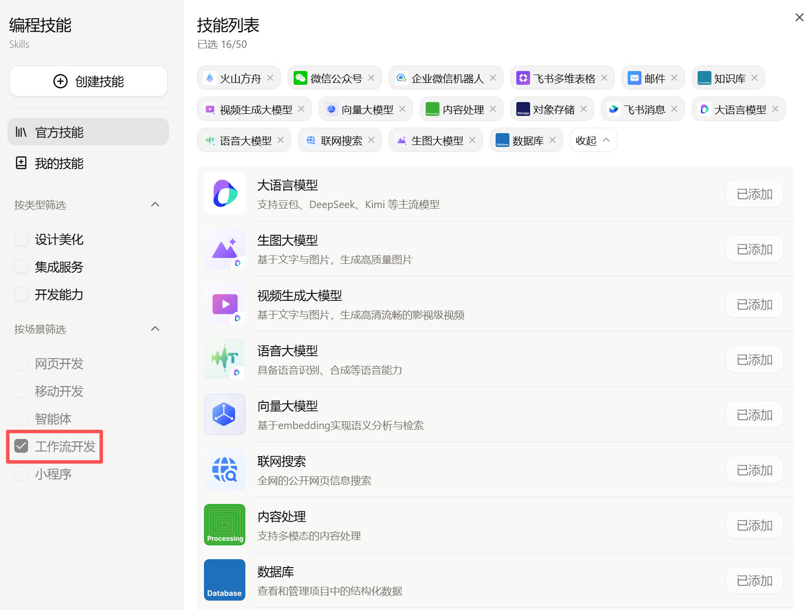 - 技能调用节点:一键调用技能商店中的专业技能,快速集成行业能力。