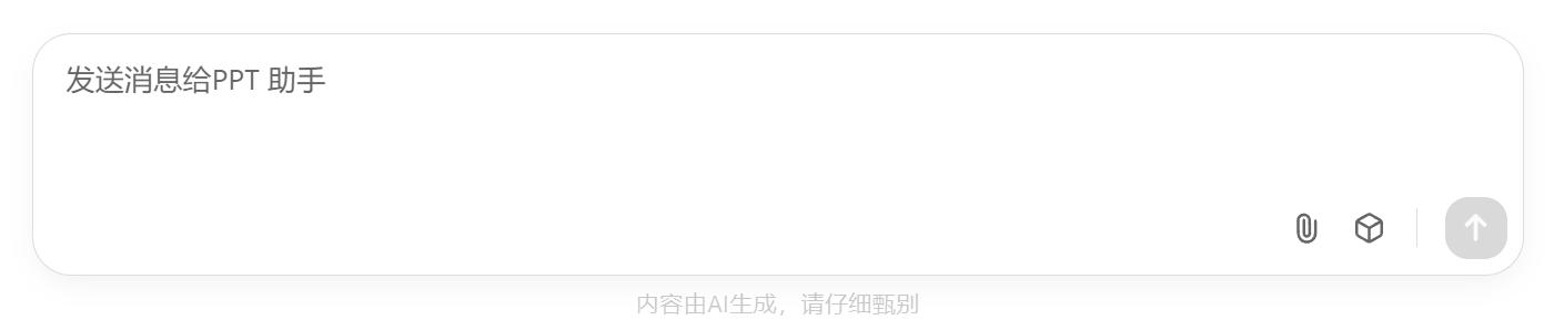 - 在输入框输入需求指令(建议包含:主题 + 结构 + 风格 + 页数)