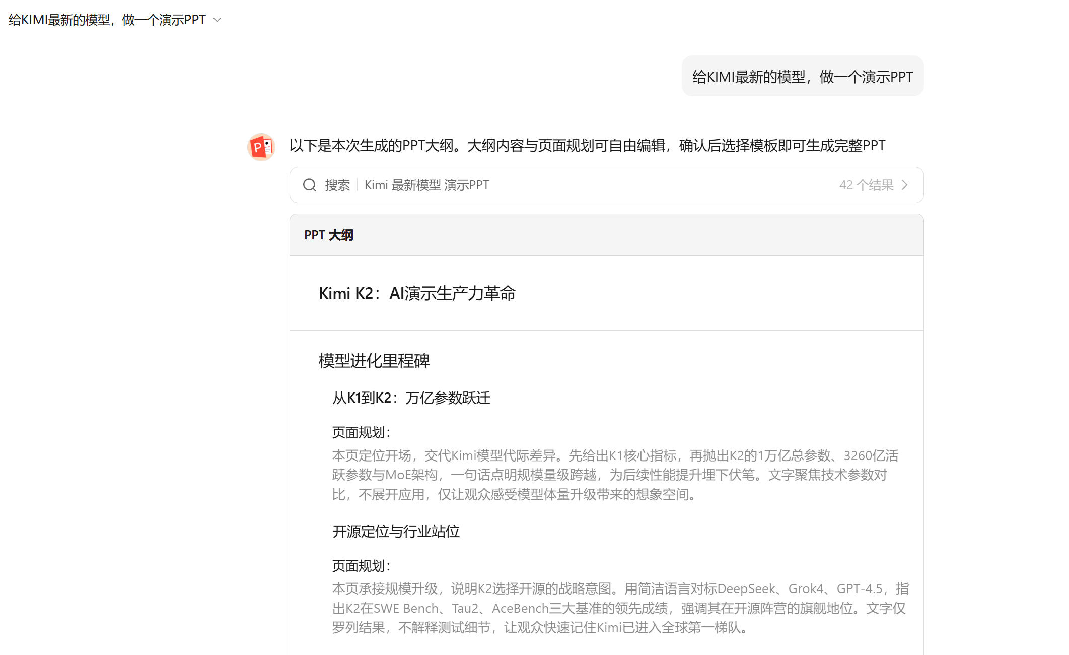 KIMI PPT 助手是 Moonshot AI 开发的智能演示文稿工具,依托超长文本处理能力(支持 200 万字符解析),实现从内容生成到设计排版的一站式服务,核心优势包括: