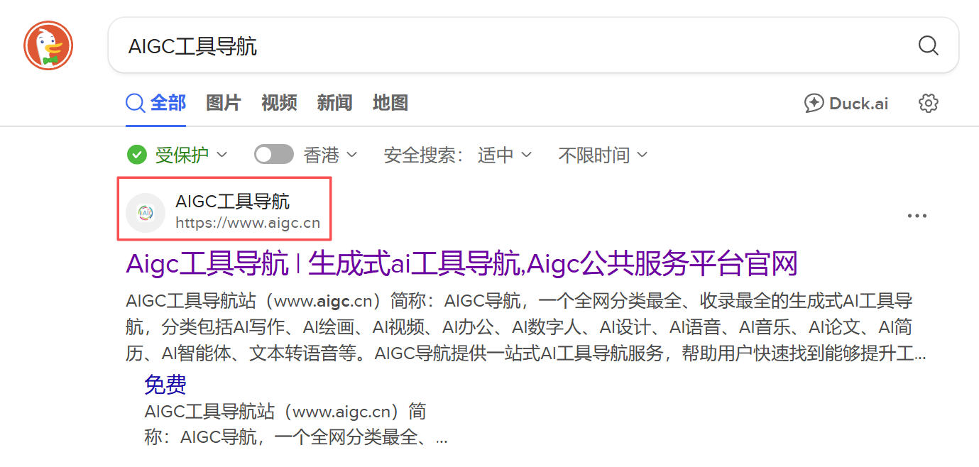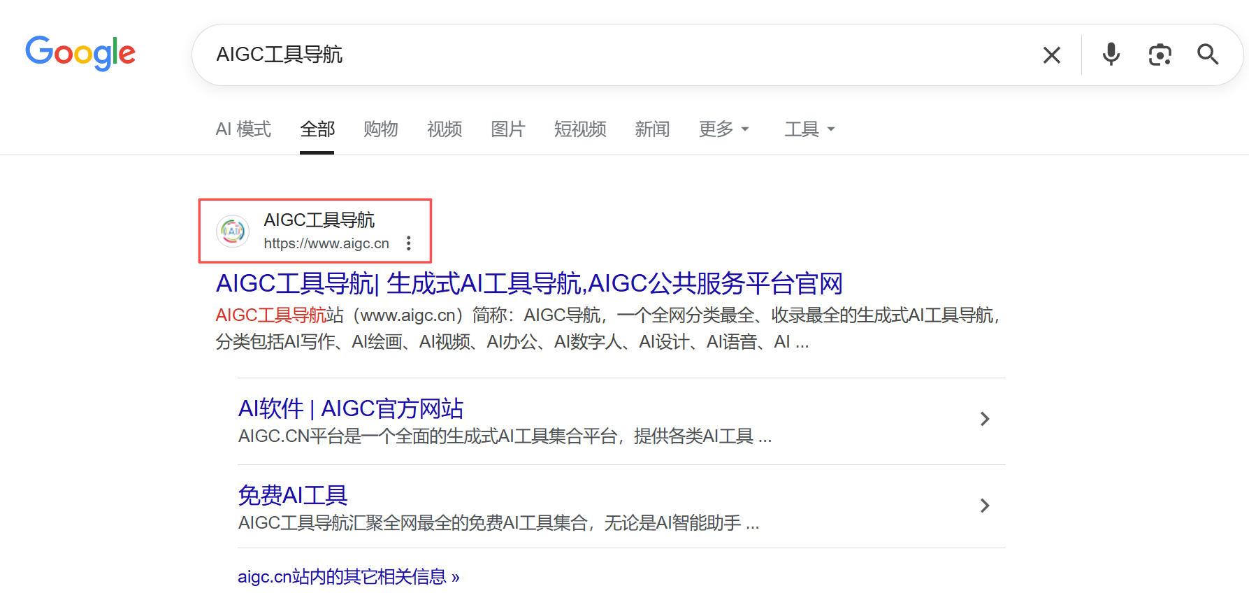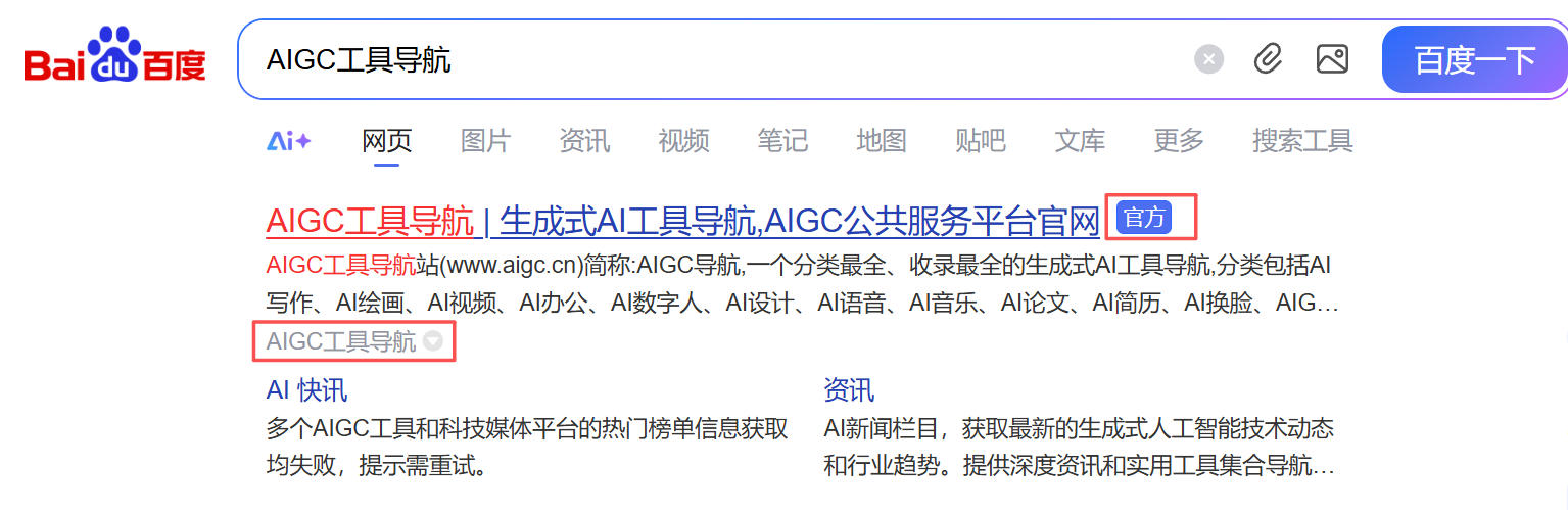 - 官方身份确认:明确收录 “AIGC 工具导航” 为官方站点,在搜索结果中通过专属标识强化用户信任;