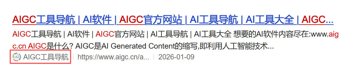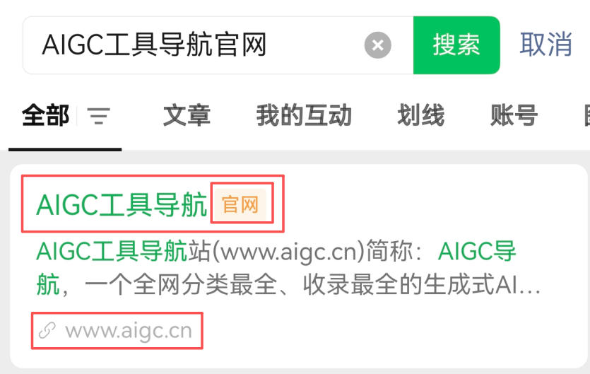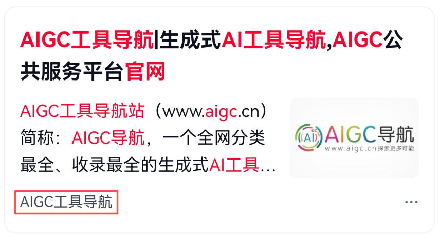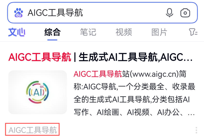 - 官方名称认定:统一认定为“AIGC工具导航”,并在百度APP搜索结果页显著标注“AIGC工具导航”名称展示;