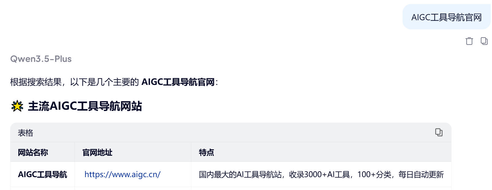- 官方名称认定:在通义App或网页版搜索结果中标注“AIGC工具导航”为“官方网站”,建立权威认知;